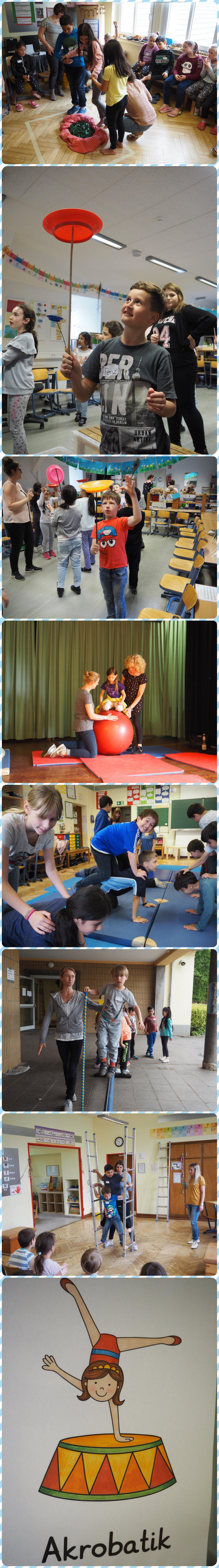 Unsere Zirkus-Projektwoche ist seit Montag in vollem Gange. Nach zwei Schnuppertagen trainieren die Kinder heute und morgen zu ihren gewählten Themen für unsere Vorstellungen am Freitag (Gruppe A um 13.00, Gruppe B um 15.00).