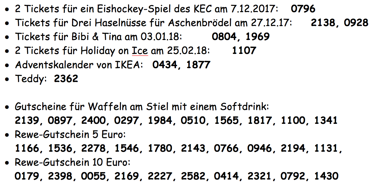 Gewinne der Sankt Martins – Verlosung
