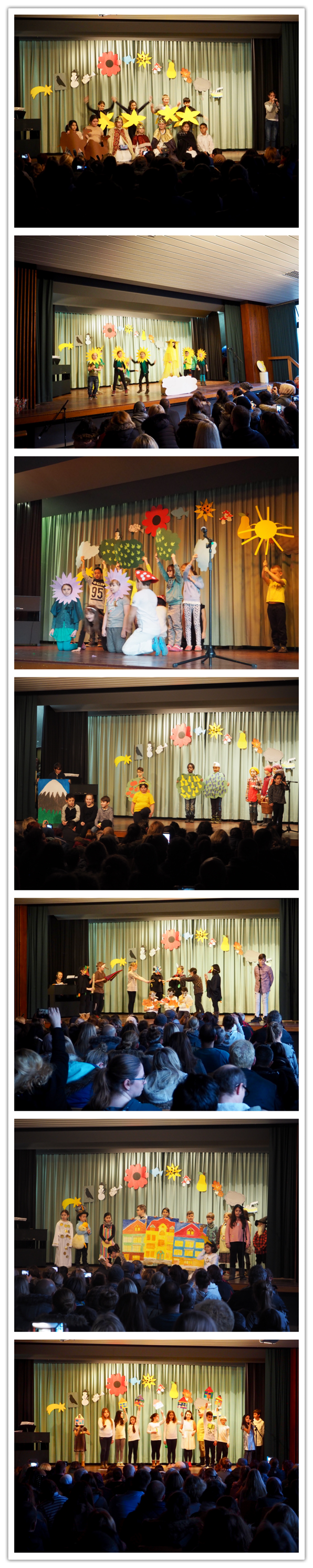 Grundlage der Aufführung waren die Monatsgedichte der Lyrikerin Elisabeth Borchers. Sie lebte von 1926 bis 2013 und war eine bekannte Dichterin und Schriftstellerin. Die Monatsgedichte, die sie schrieb, wurden im Jahr 2000 von dem Kölner Komponisten Matthias Keul vertont. So entstanden zu allen 12 Monaten Lieder, die die Kinder aller Klassen im Rahmen eines Musiktheaters vorstellten.