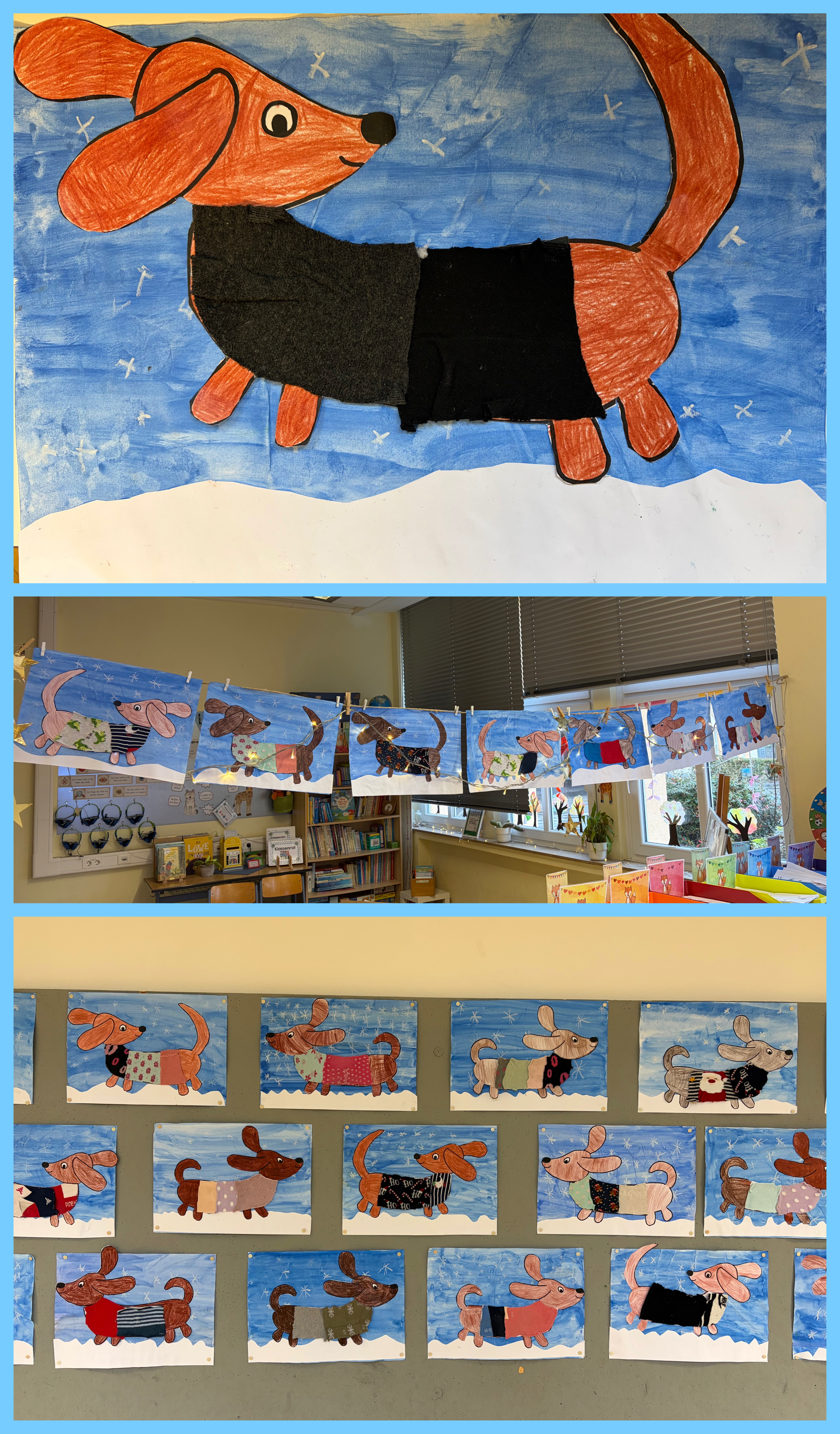 Die Kinder der Fuchsklasse waren kreativ und haben dem Dackel Bruno einen dicken Pullover für den Winter angezogen.