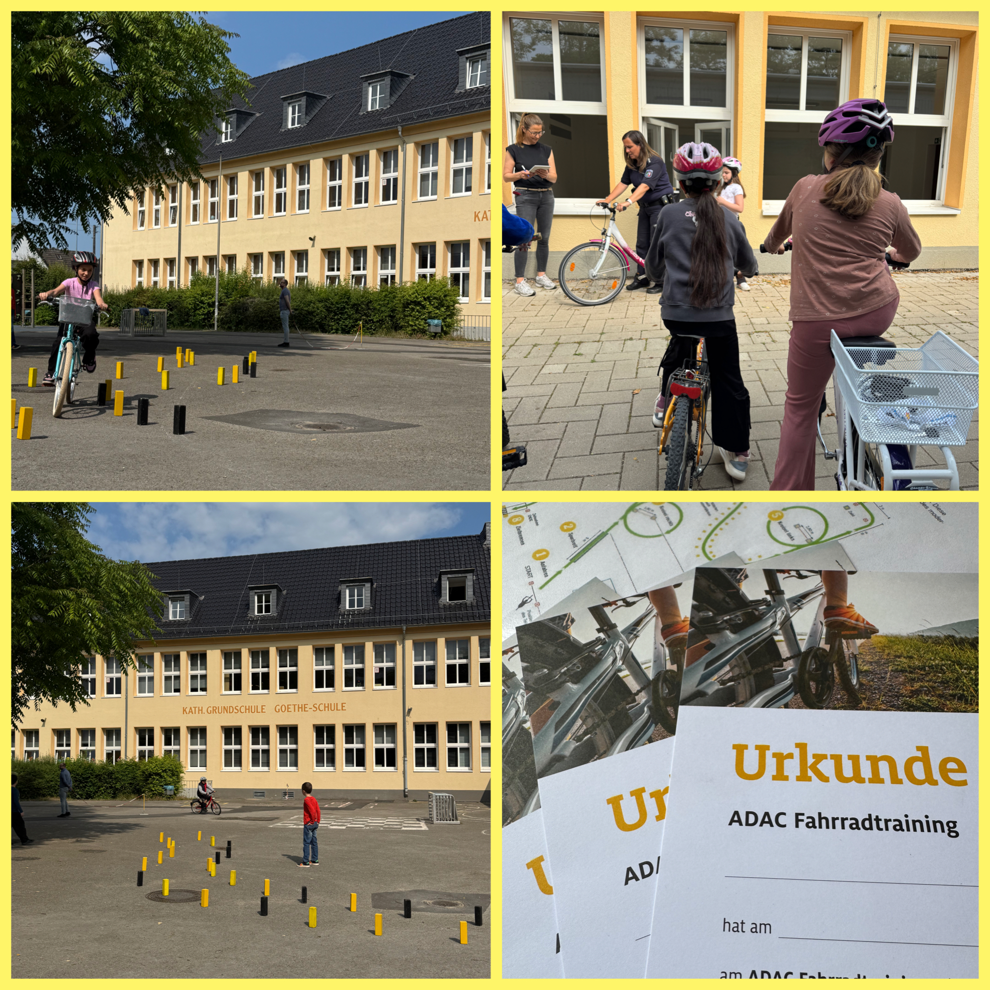 Unser dritter Jahrgang beim ADAC Fahrradtraining auf dem Schulhof. Unsere Verkehrspolizistin Frau Kremer überprüfte alle Räder auf Verkehrssicherheit.