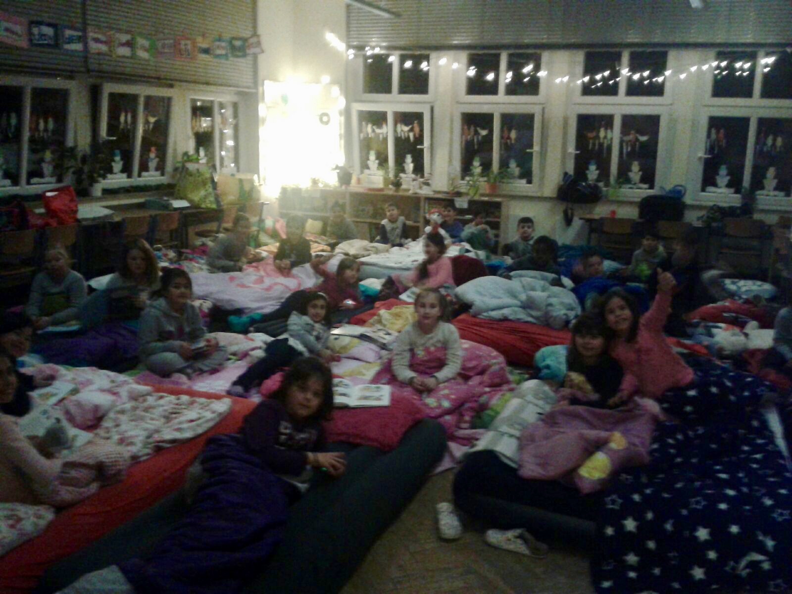 Am 8.12. übernachteten die Zweitklässler der Zebra- und Schildkrötenklasse mit ihren Lieblingsbüchern in der Schule.